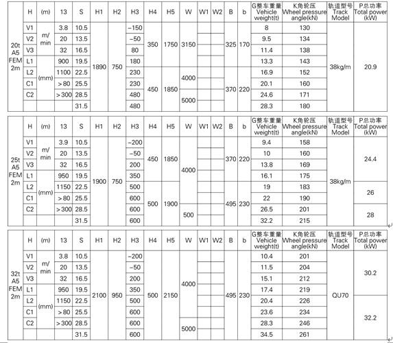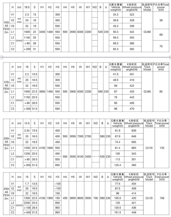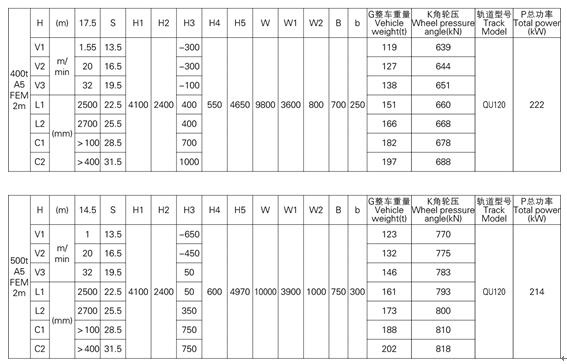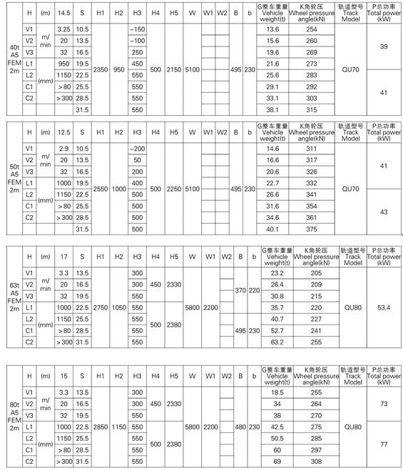 3、表中的尺寸,重量,輪壓供客戶訂貨時(shí)參考,如果客戶的需要條件發(fā)生變化,如工作級(jí)別,速度,起升高度有變化時(shí),相應(yīng)的參數(shù),尺寸,重量,輪壓等都會(huì)發(fā)生變化,實(shí)際的參數(shù),質(zhì)量,輪壓以合同的要求為準(zhǔn)。